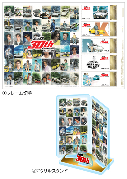 【頭文字D 30th Anniversary】・フレーム切手(①のみ)販売価格:1,400円/シート・フレーム切手セット(A4スリット入り台紙+①+②)販売価格:3,000円/セット